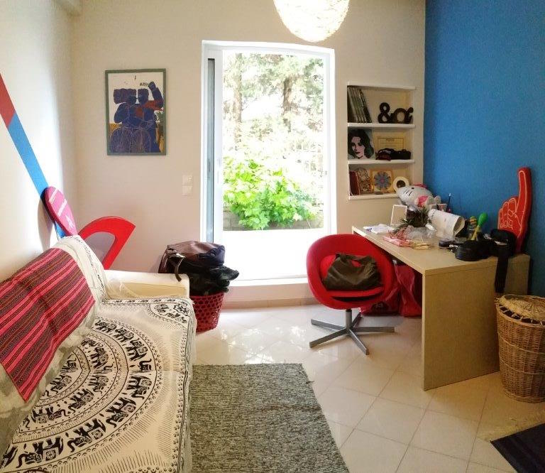 The 100m2 apartment was constructed 1987, and was fully renovated because of dampness penetrating from the surrounding garden. Waterproofing was applied on the outside of exterior walls in order to stop moisture from penetrating in the apartment. Replacement of hydraulic and electrical installations was necessary due to their age. Energy upgrading of apartment was achieved by use of gas for heating with individual heating boiler. The built-in kitchen cabinets were replaced and finally the apartment was painted.
