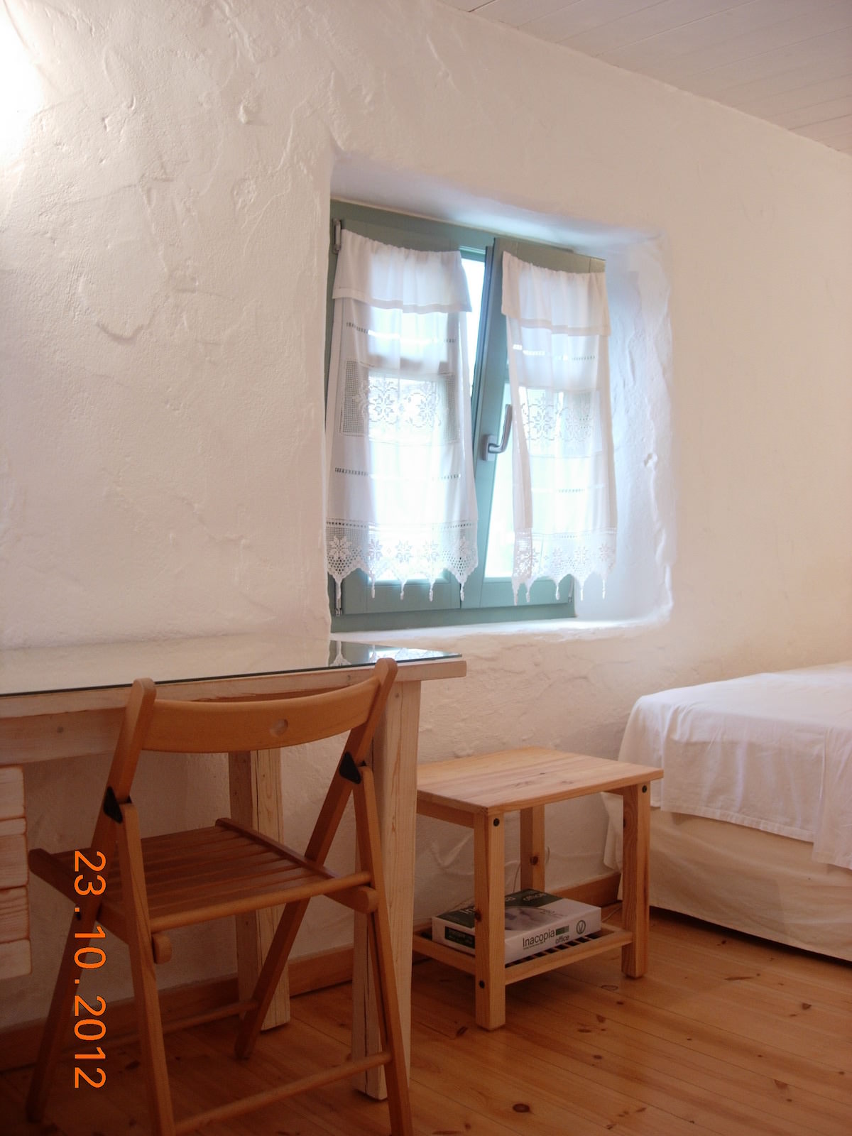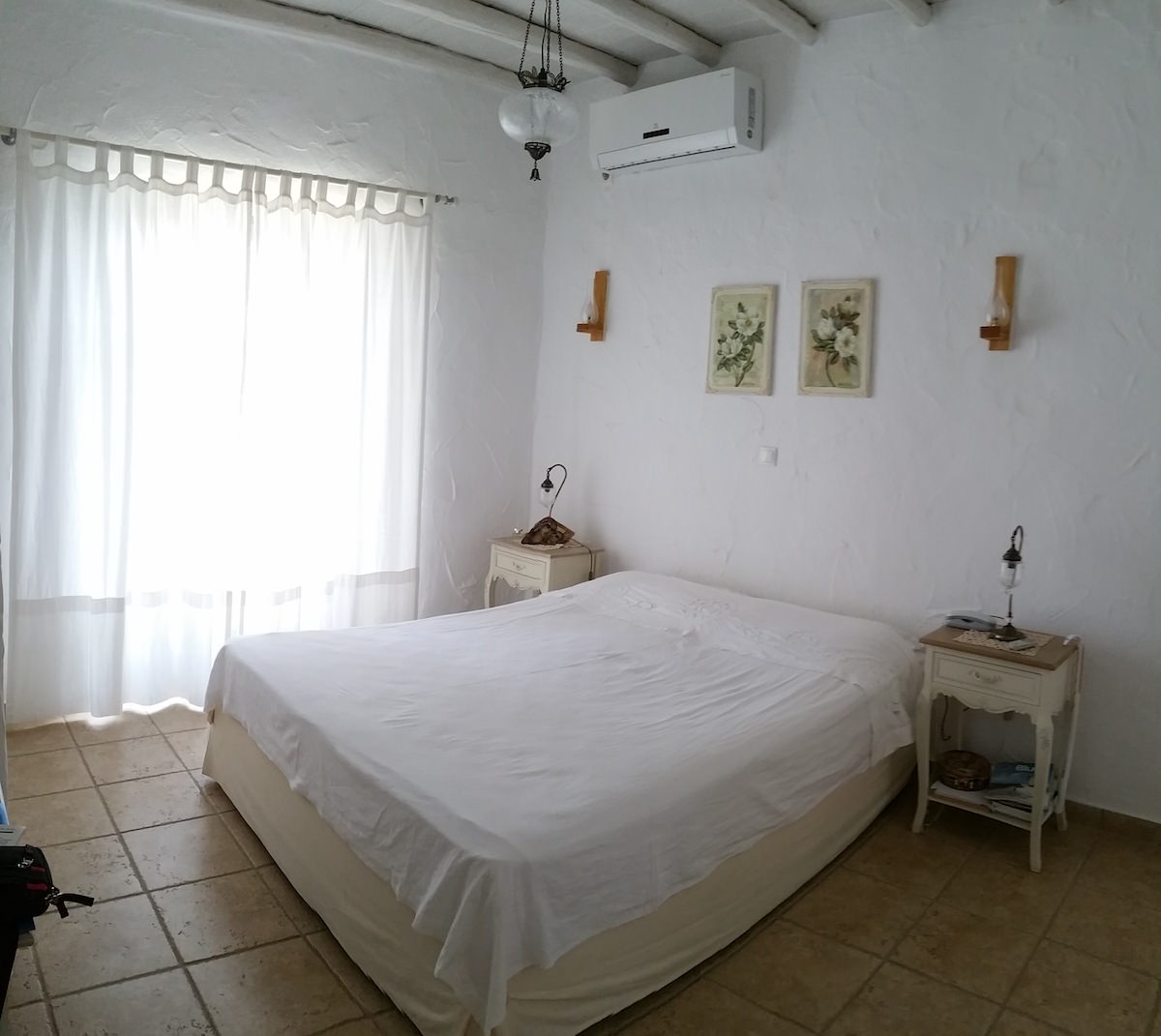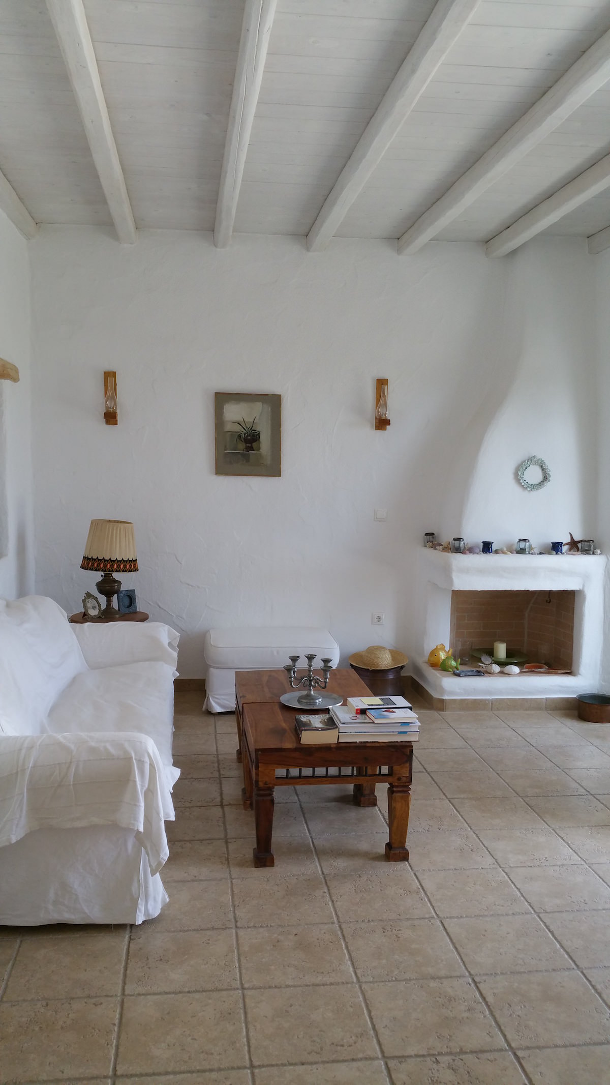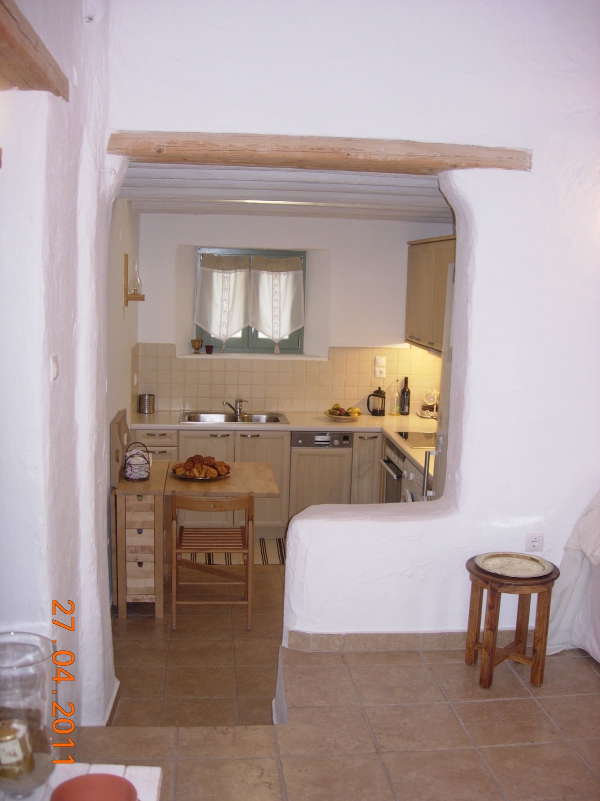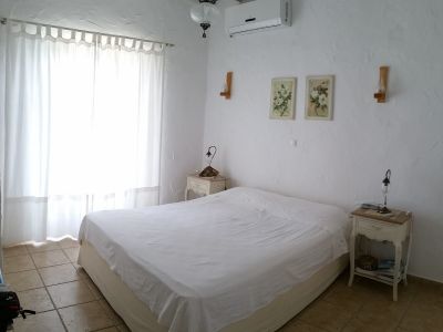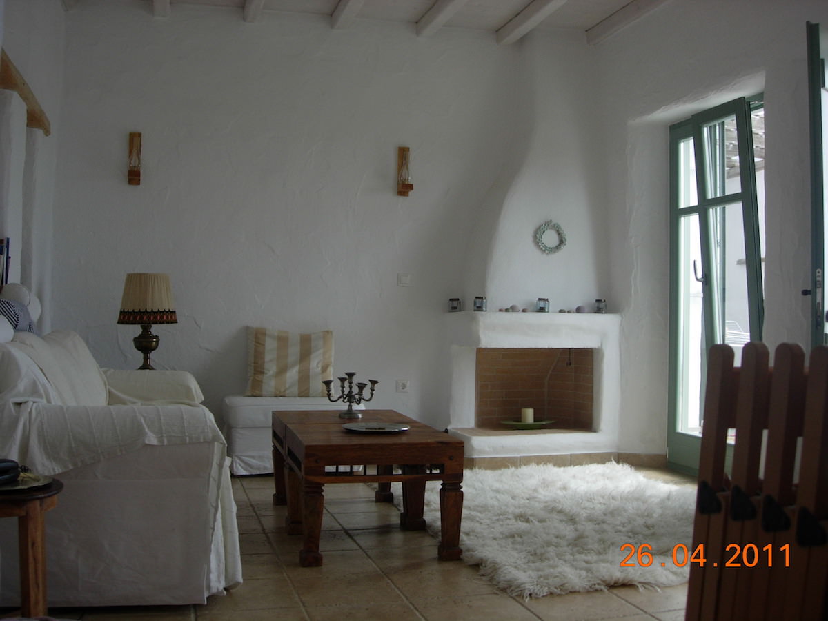 The eye pleasing view of the traditional independent house, overlooks Golden Beach, and five Aegean islands. It has a total area of 118.59 m2, is fully furnished and consists of 3 bedrooms, 2 baths, living room with a fire place, an outdoor storage area and a kitchen fully equipped with all major appliances and built-in cabinets. The view is endless of the all around verandas. The main veranda has a pergola, faces south and is all shaded after 5:00 pm in the summer, a perfect spot for relaxation. The distance to Golden Beach is 500 m.
