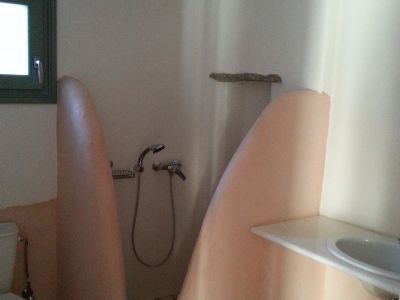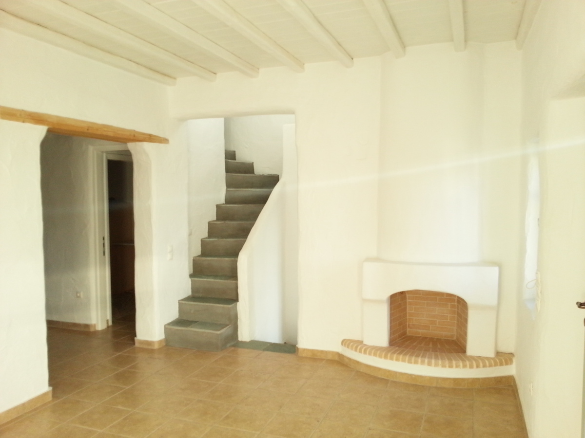 The eye pleasing view of the traditional independent house, overlooks Golden Beach, and five Aegean islands. It has a total area of 115.38 m2 and consists of 3 bedrooms, 2 baths, living room with a fire place a kitchen with built-in cabinets and a storage area. The view is endless of the all around verandas. The main veranda has a pergola, faces south and is all shaded after 5:00 pm in the summer, a perfect spot for relaxation. The distance to Golden Beach is 500 m.
